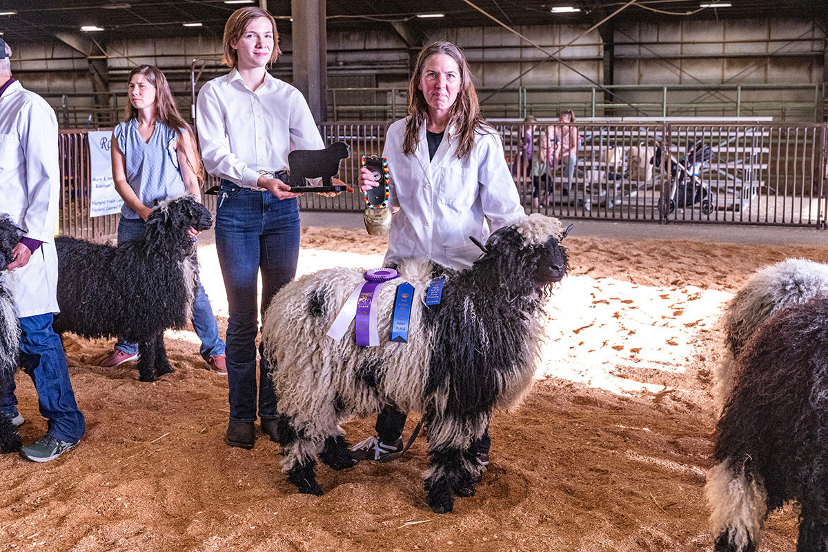 We are proud to work with two exceptional purebred rams—PV Captain Fantastic and HoneyGlass Jeb—whose genetics shape each new lamb crop with purpose and precision. As we continue to upgrade toward the Swiss Valais Blacknose standard, our flock has already earned recognition in the show ring, including recent Grand Champion honors at the Black Sheep Gathering.
